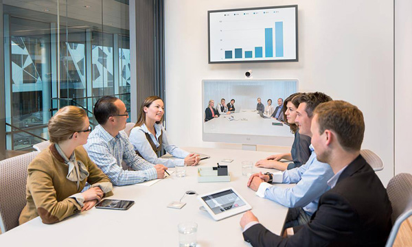 视频会议系统可以为拥有两个或多个办公地点的企业,通过通信设备和网络,进行面对面交谈的会议。